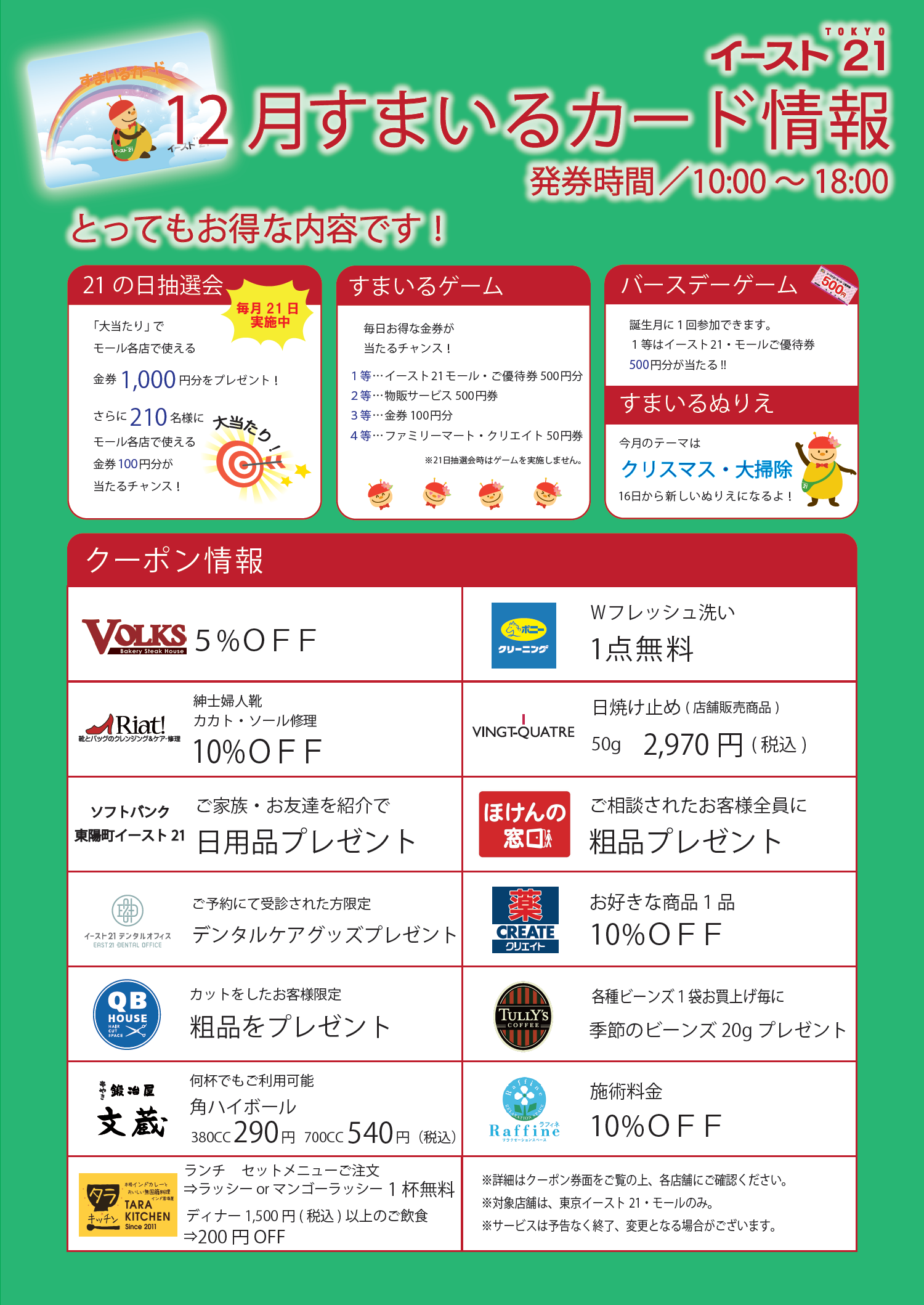 ※今月のお得なすまいるカード情報について詳しくはこちら